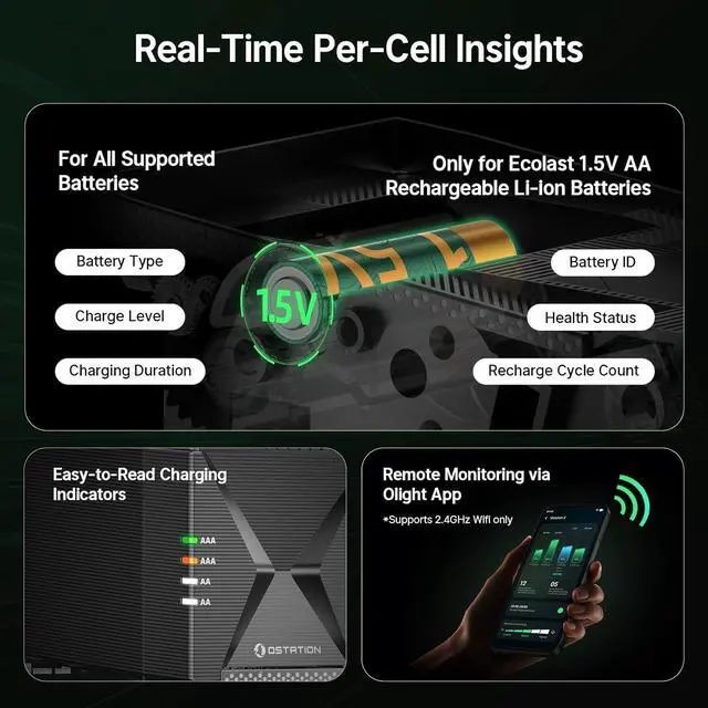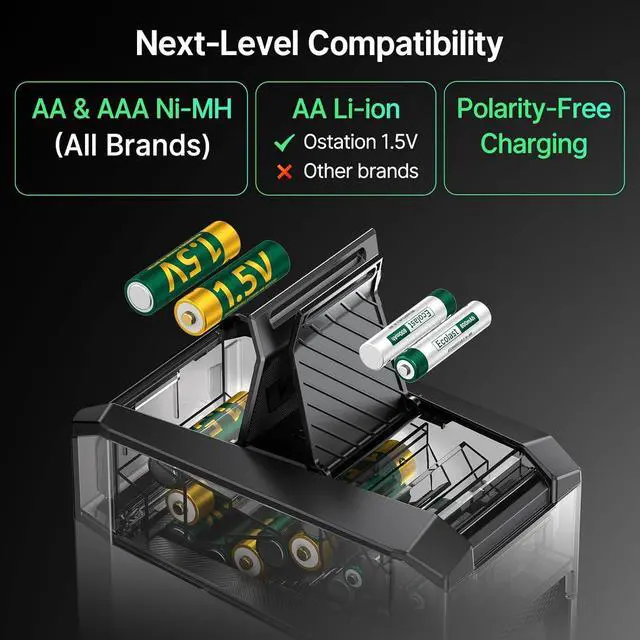 . - : Each Ecolast 1.5V AA lithium battery features a smart chip and advanced battery management system, syncing effortlessly with the Ostation 2 series for full monitoring and safer, optimized charging