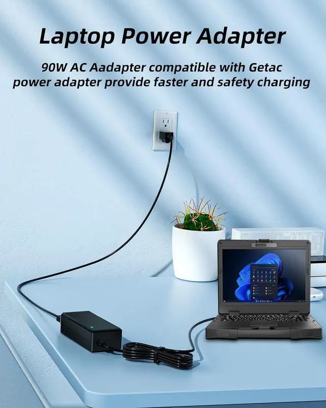 [Product Details] Fits Getac B300 charger features universal AC input ranging from 110V to 240V, making it suitable for use worldwide. It delivers a stable output 19V 90W, ensuring efficient charging. Additionally, the B300 charging cable extends up to 8.8 feet, providing ample reach for convenient use.