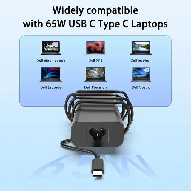Compatible with Dell Laptop Charger USB CInput:100-240V 50-60Hz,1.8A, Output:5V-3A,9V-3A,15V-3A,20V-3.25A; Max Watts: 65W(Compatible with 60W 45W USB-C Charger)