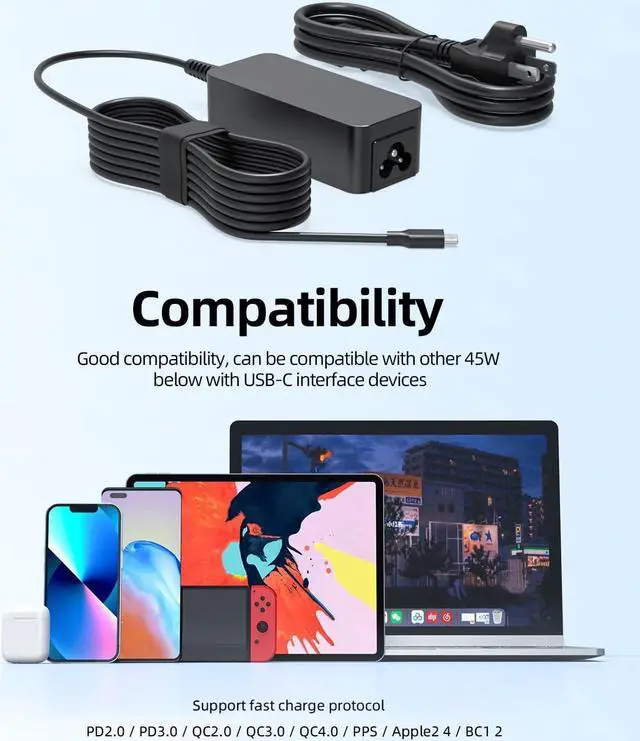 Fit for HP Chromebook charger for x360 11-ae 14-ca 14-na 14-db 14a-na 14 14a 14c 14b 11 11a 14-ca043cl 14-ca051wm 14-ca052wm 14-ca091wm 14-ca0061dx 14-ca060nr 14-ca020nr and more Chromebook USB-C Series