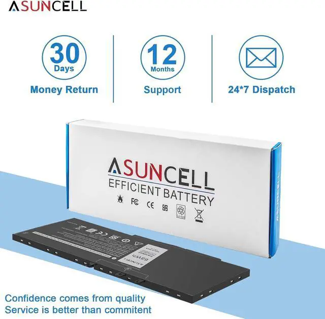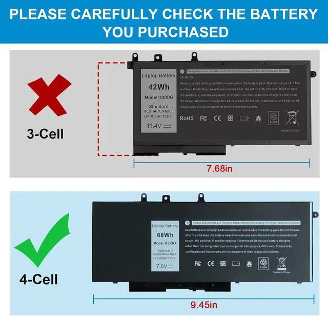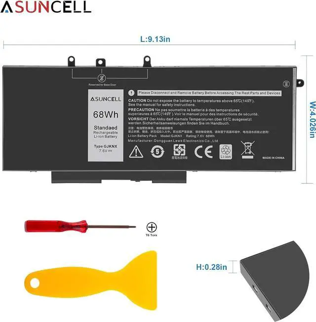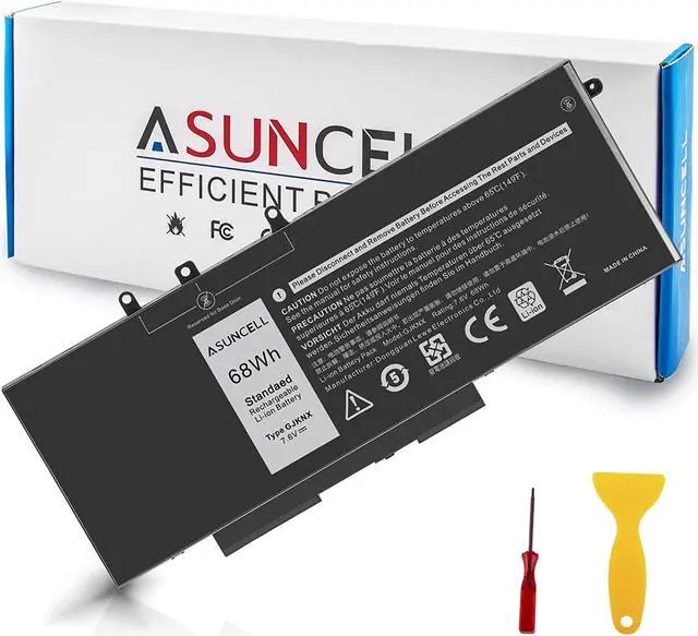 GJKNX Battery for Dell - laptop computer battery is made of Li-ion, 4-cells, 7.6V, 68Wh capacity. 100% Brand new. Up to 500 recharge cycles over the life of the battery.