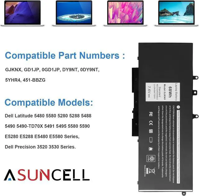 Compatible Models - This GJKNX laptop battery fits for Dell Precision 15 3520 3530 Series, Latitude E5288 14 5495 5490-TD70X 14 5490 5288 E5280 5491 15 5590 15 5580 Series (Details listed below) )