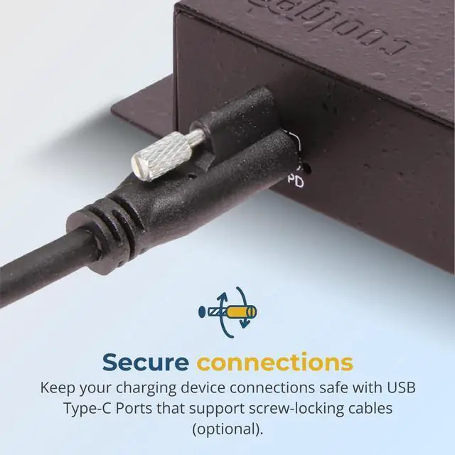 Downstream: 1 USB Type-A QC Port, 1 USB Type-C PD Screw-Lock Compatible Port