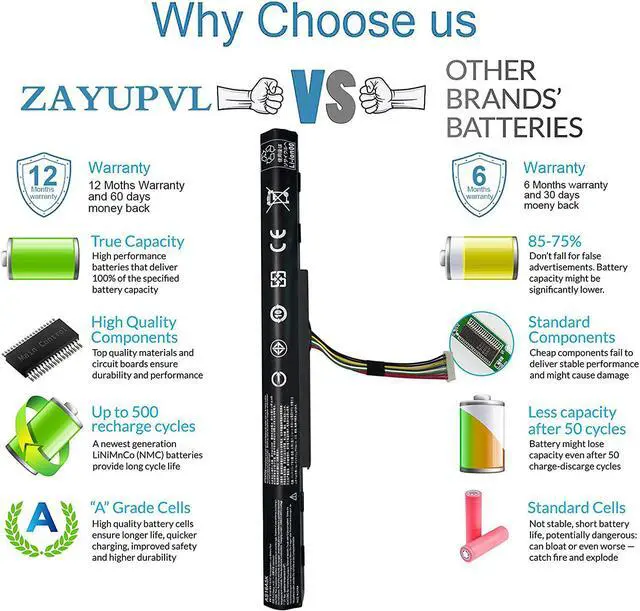 Security: 100% new from manufacturer, every battery has passed factory testing, grade A cells ensure fast charges and low power consumption, built-in circuit protection ensures both safety and stability. Up to 500 recharge cycles over the life of the battery.