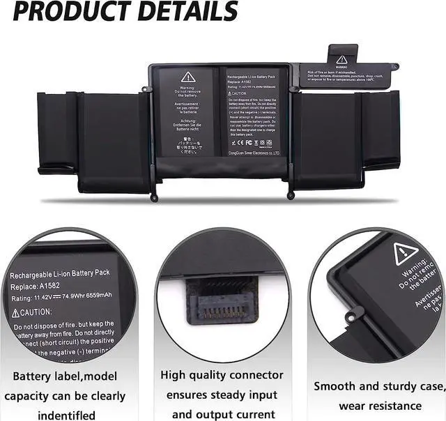 A1582 A1502 Laptop Battery For Mac Book Pro 13 Inch Retina A1493(Late 2013, Mid 2014,Early 2015) ;Fit Mf839 Mf840 Mf841 Me864 Me865