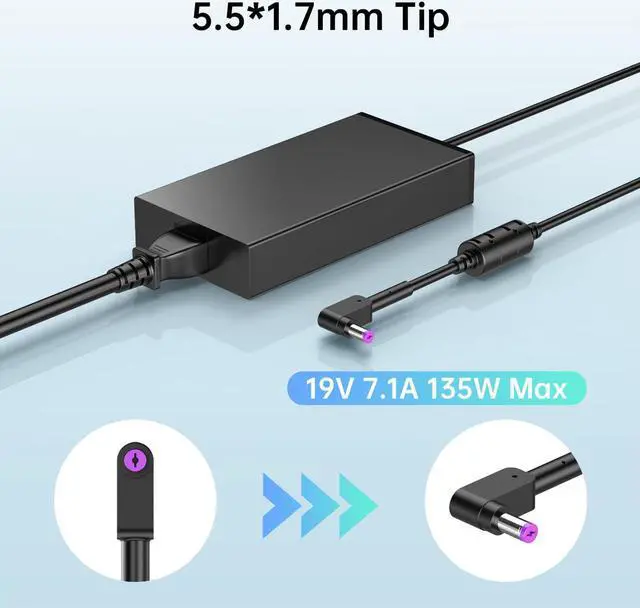 [The Best Partner for Nitro 5 Gaming ]- This Nitro-5-Laptop-Charger has an output power of 19V 7.1A 135 Watt. The plug size is 5.5 * 1.7 mm. It is perfectly compatible with Acer 135W charger ADP-135KB T, ADP-135NB B. It works with most Acer Nitro 5 Gaming Laptop. As long as your original Acer 135W power supply model is ADP-135KB T or ADP-135NB B, then you can use this Acer-135-Watt-AC-adapter.