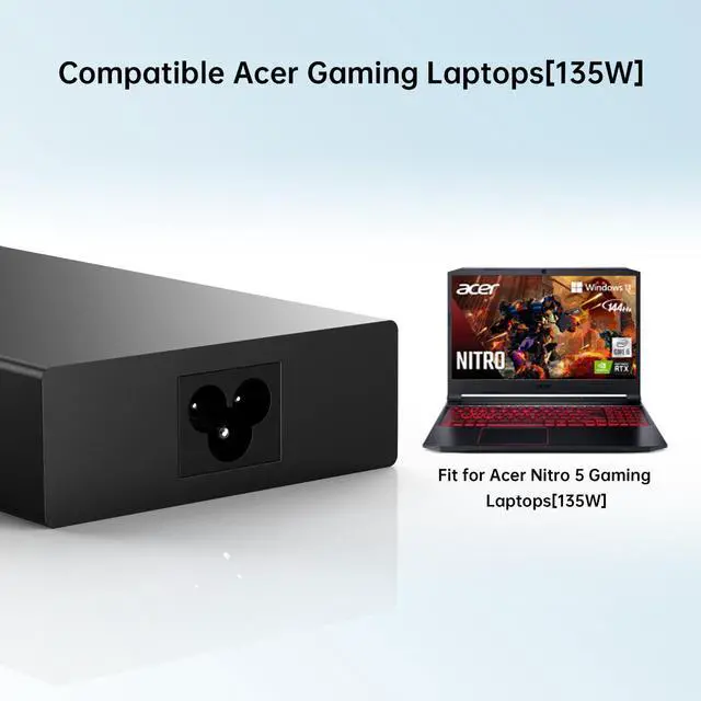 [Powerful Compatibility]- It works with (Incomplete list) Acer Nitro 5 Gaming Laptop N18C3 N18C4 AN515-31 AN515-41 AN515-42 AN515-43 AN515-51 AN515-52 AN515-53 AN515-54 AN515-56 AN517-51 AN515-57-584Y AN515-55-53AG AN515-44-R99Q AN515-55-52KW; Acer-ADP-135NB-B / Acer-ADP-135KB-T/ Acer PA-1131-16 PA-1131-05. [Do not buy if your laptop requires more than 135W].