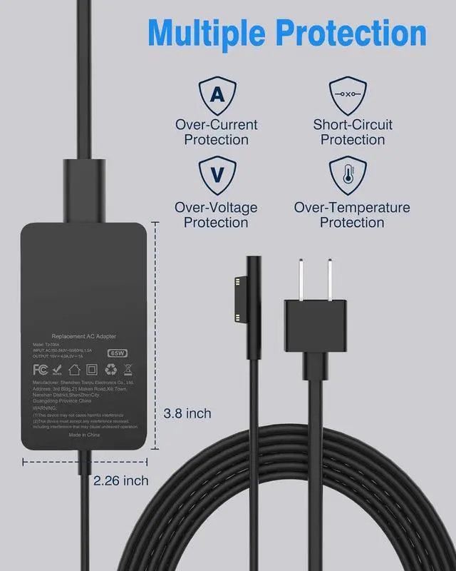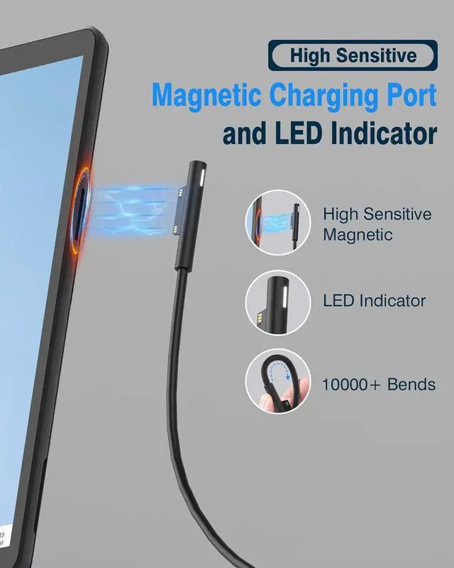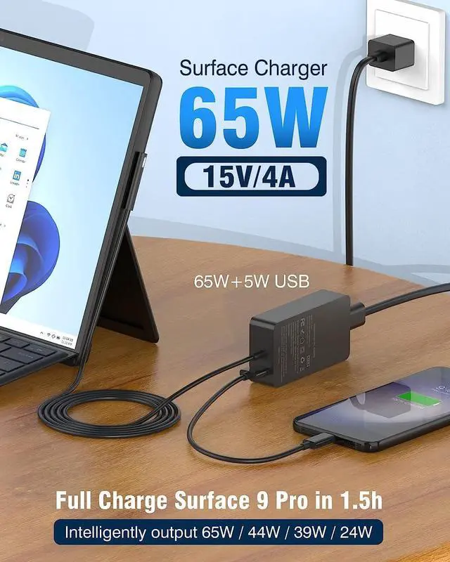 Microsoft Surface: Full charge Surface Pro 9 in only 1.5 h, match Surface model 1963/ 1706/ 1735/ 1800/ 1866/ 1796/ 1724/ 1625/ 1867 and so on, higher charging performance than 44W/ 39W/ 24W charger.