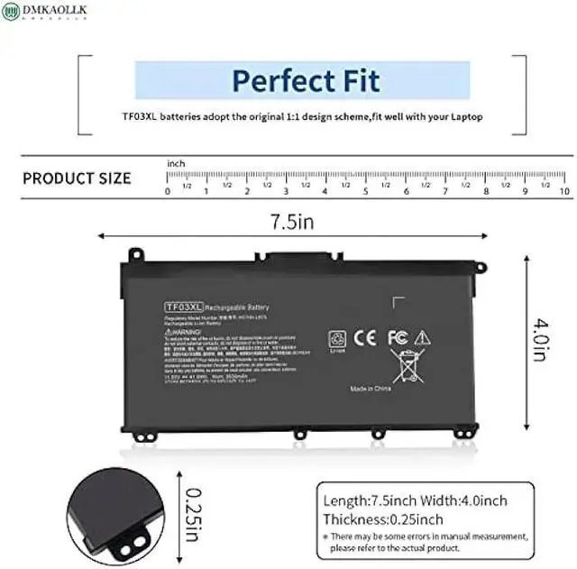 Compatible Models: TF03XL Battery for HP Pavilion 15-cc023cl 15-cc123cl 15-cc1xx 15-cc5xx 15-cc0xx 15-cc6xx 15-cc154cl 15-cc561st 15-cc563st 15-cc184cl 15-cc508la 15-cc183cl 15-cc187cl 15-cc195cl 15-cc134tx 15-cc123d 15-cc5021a 15-cc152od 15-cc178cl 15-cc158nr 15-cc050wm 15-cc665cl 15-cd0xx 15-cd075nr 15-cd040wm hp pavilion x360 14m-cd0003dx 14-cd1055cl 14-cd0017ns 14-cd1055d 14-cd1055cl 14-cd0008la 14-bf0xx 14-bf050wm 14-bf102tx 14-bf108ne 14-bk0xx 17-ar0xx 17-ar050wm 14-bk0xx