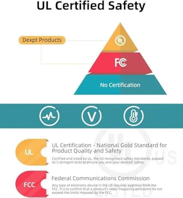 Safety - Certified and listed by UL, the US recognized safety standards, passed UL's stringent tests to ensure you and your devices' safety.