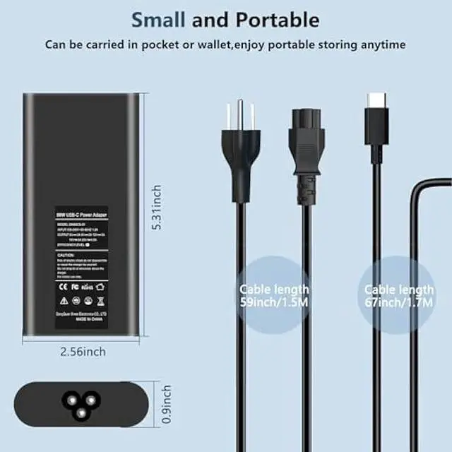 WHAT YOU GET: 1x 90W USB Type-C Power Adapter Compatible with Dell, 1x AC power cord