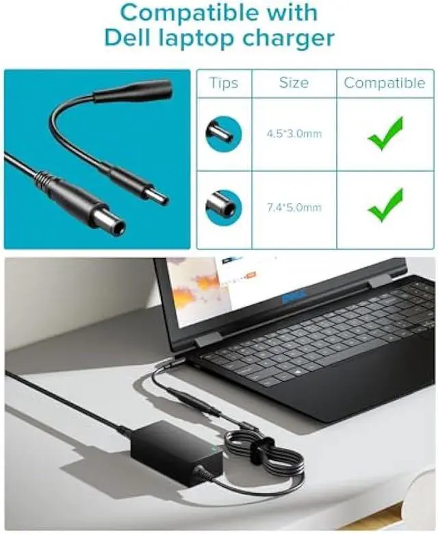 Replacing Dell Latitude 14 Rugged 5404, Latitude 14 Rugged Extreme 7414, Latitude 3330, 3340 3350 3440 3450 3540 3550 6430u E5250 E5430 E5440 E5450 E5530 E5540, E5550 E6230 E6330 E6430 E6430 ATG, E6430s E6440 E6530 E6540 E7240 E7270 E7440 E7450 Latitude 12 Rugged Extreme (7204) 7404 ST XT3 Vostro 2420 2520 3360 3460 3560 XPS 14 L421X 18 1810 1820, CB1C13 PA-12, Chromebook Latitude 11 3180 3189 P26T laptop charger adapter Dell laptop power cord charger AC adapter charger