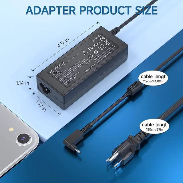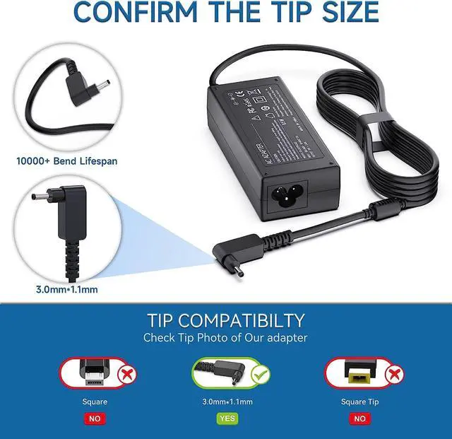65W AC Charger Replacement for Acer Aspire 5 A515-44 A515-44-R2SA A515-54 A514-54-501Z A515-44-R41B A515-54-51DJ A515-54G A515-54G-5928 A515-55 A515-55G A515-55G-57H8 A515-55-56VK A515-55-378V A515-56 A515-56-36UT; Acer swift spin 1 3 5 series: SF515-51 SF314-54 SF315-52 SF314-55 SP111-31N SP111-32N SP113-31 SP111-33 SP314-51 SP314-52 SP314-53N SP314-53 SP314-54 SP513-51 SP513-52N SP513-53N