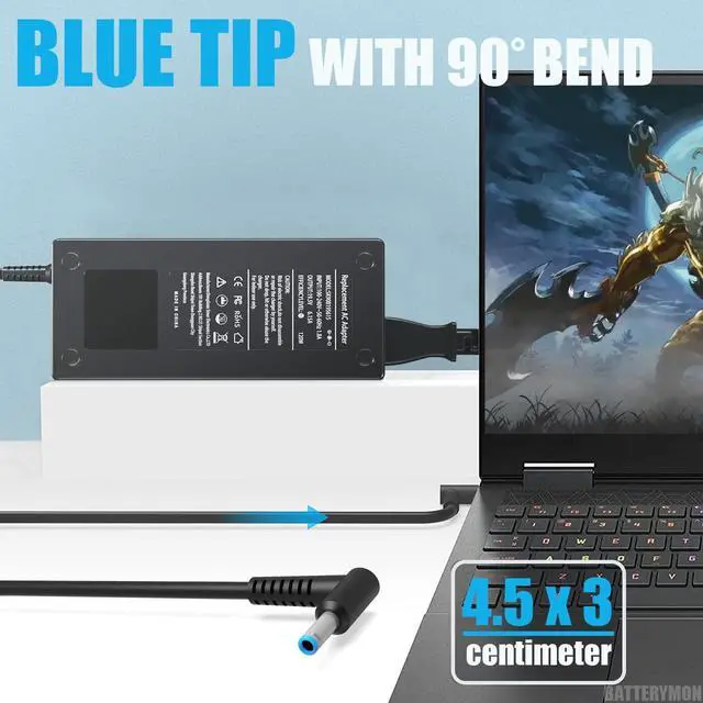 Connector size: 4.5 x 3.0 mm ( Blue Tip ) Please kindly make sure your oem charger tip is the same as ours before purchasing.