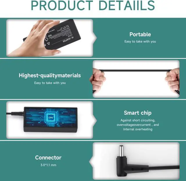 Output: 19V ~ 3.42A ~ 65W, Input: 100~240V
