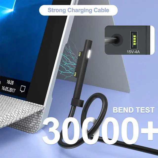 Surface Pro Laptop Charger Widely compatibility: Compatible with Microsoft Surface Pro 9, 8, 7+, 7, 6, 5, 4, 3, X, Windows Surface Laptop 5, 4, 3, 2, 1, Studio, Surface Book 3, 2, 1, Surface Go 3, 2, 1.