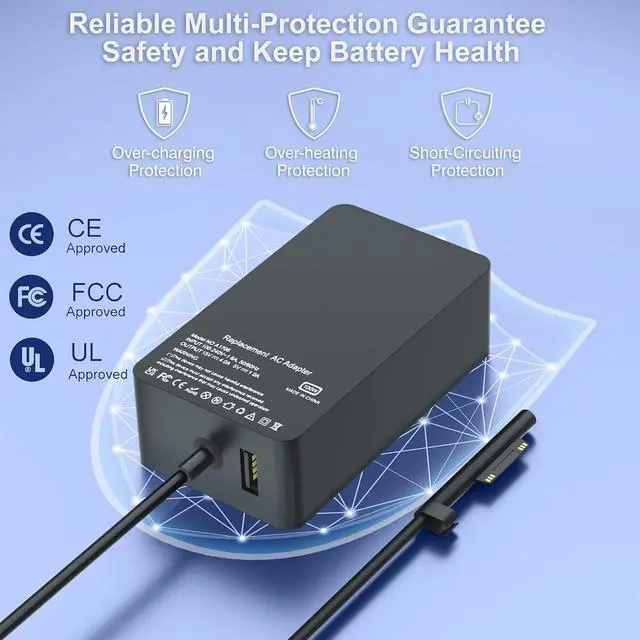What You Get: 1 x Microsoft Surface Pro adapter, 1 x Microsoft Surface Pro power supply cord; enjoy worry-free 12-month warranty by refund or replacement and friendly customer service. (The return window will be closed a month after you received the the product. CONTACT US, we will make it up and solve it more efficiently)