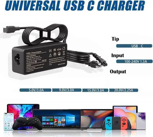 Package Includes: 1 X AC Adapter, 1 X Power Cord; CE/FCC/ROHS Certified for Security 45 watt usb c charger