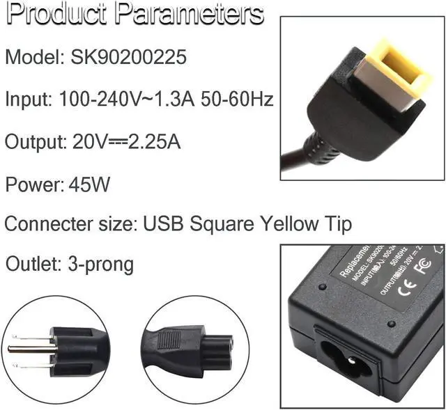 Compatible for Lenovo 20V 2.25A 45W AC Adapter ADLX45NLC3A, 36200246, 0B47030, ADLX45NDC3, ADLX45NDC3A, ADLX45NLC3, ADLX45NLC2A, 45N0293, 45N0294, 45N0295, 45N0296, 36200280, 36200245, 45N0289, 45N0290, PA-1450-12.