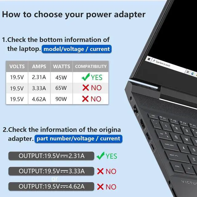 Compatible with Pavilion x360 11 13 15 M3: 11-k120nr 13-s128nr 13-s192nr 15-n210us 15-n210dx 15-n211dx 15-n220us 15-n228us 15-n230us 15-n240us 15-n260us 15-n280us 15-n290nr 15-f271wm 15-f224wm 15-f272wm 15-f337wm 15-f387wm m3-u001dx m3-u003dx 15-d020dx 15-d035dx 15-d020nr 15-d030nr 15-d073nr 15-an051dx 15-af075nr 15-af131dx 15-af151nr 15-af152nr 15-af172nr 15-af141dx 15-ac151dx 15-ac158dx 15-af113cl Laptop Notebook Ac Adapter Laptop Charger