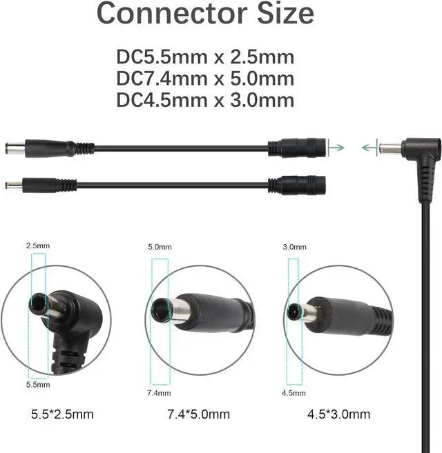Connector DC Plug: 5.5 mm x 2.5 mm And 4.5 mm x 3.0 mm. 7.4 mm x 5.0 mm.