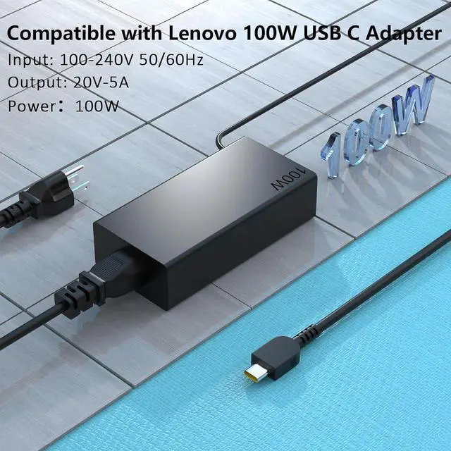 Fast Charge & Wide CompatibilityOfficial 100W USB C Charger compatibe with Lenovo Laptops with Power Delivery technology delivers rapid charging to Yoga 9i/7/7i, ThinkBook 16/15 Plus Gen 3, IdeaPad 5 Pro 160-80% in 45 mins. Features universal 100-240V voltage input for worldwide travel use.