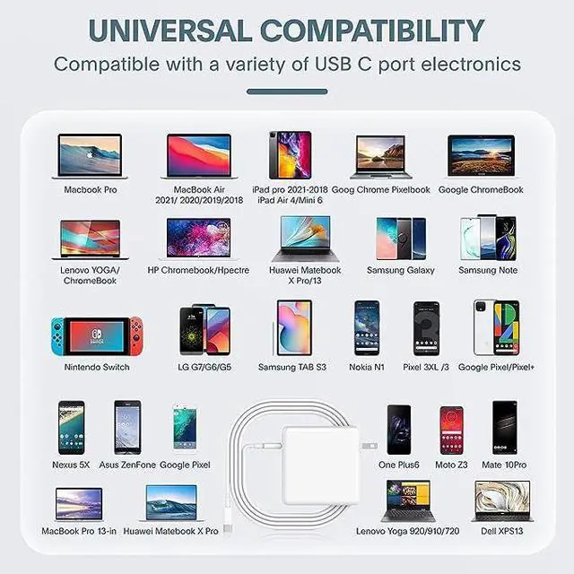 Wide Compatibility: Compatible with MacBook Pro 16, 15, 14, 13", New MacBook Air 13" 2021/2020/2019/2018, iPad Pro 12.9, 11" 2020/2018 and iPad Air 10.9" (2020) and all USB - C port devices, laptops and smartphones. Automatic identification and conversion of charging power.