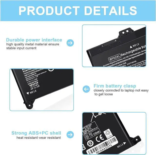 Compatible P/N: bp02xl rechargeable battery, BP02XL BPO2XL 849909-850 HSTNN-LB7H 849569-421 TPN-Q172 849909-855 BP02041XL 849569-541 HSTNN-UB7B 2ICP7/65/80 TPN-Q175 849569-542 849569-543