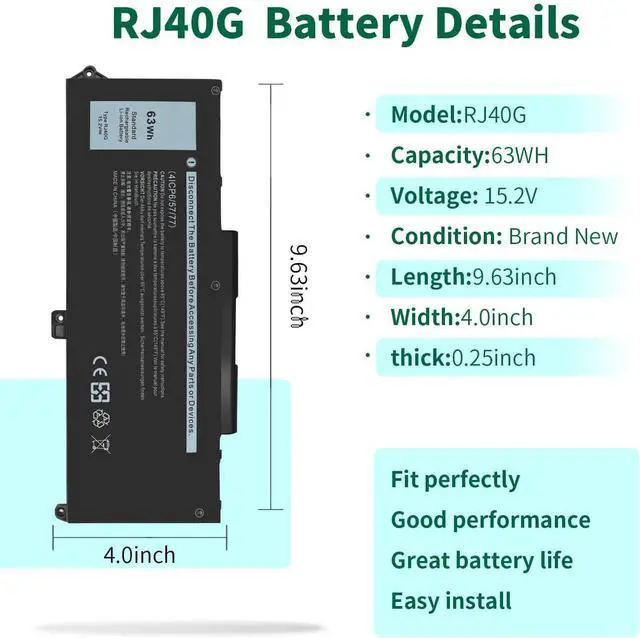 Compatible Laptop Models: RJ40G 63Wh Laptop Battery Replacement for Dell Latitude 14 5420 Series, Replacement for Dell Latitude 15 5520 Series; Replacement for Dell Precision 15 3560 Series; Replacement for Dell P137G P137G001 P104F P104F001 P104F002 Series Laptop Notebook (Check description below for more models)