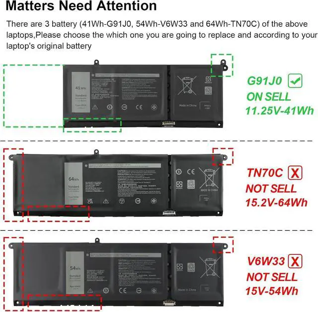 Note: There are 3 battery(41Wh-G91J0, 54Wh-V6W33 and 64Wh-TN70C) of the above laptops, Please choose the which one you are going to replace and according to your laptop' s original battery