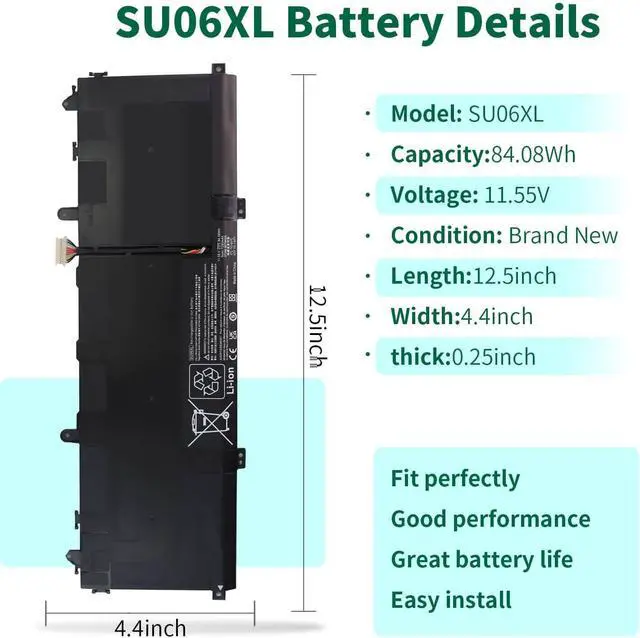 Quality and CertificationSU06XL Battery for hp spectre x360 convertible 15-df0xxx battery is highly compatible with the original L29184-005 HP Battery Genuine and meets CE/FCC/ROHS/UL certified standards. It is a brand-new product from the manufacturer and supports up to 1000 recharge cycles.