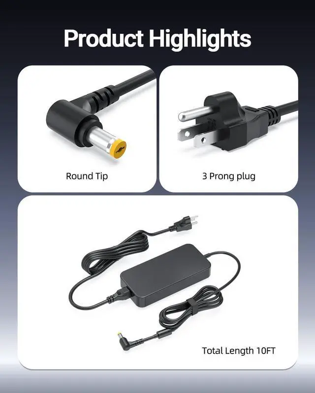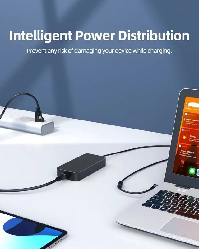 Space-Saving Design with 10FT CableThe slim, portable design and extended 10-foot cable length allow for efficient charging of high-powered laptops from a distance, ideal for use at home, work, or while traveling.