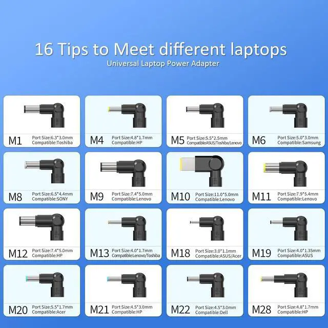 universal power adapterLaptop charger 90W universal Compatible for most laptops Chromebooks Ultrabook' s. Plug and play, Easy to use with automatic voltage adjustment. You can power your different brand laptops with just one laptop power cord. Please do not charge laptops over 90W