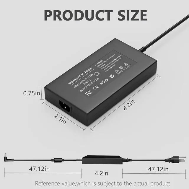Input: 100-240V 50-60Hz, Output: 19.5V - 9.23A, Output
