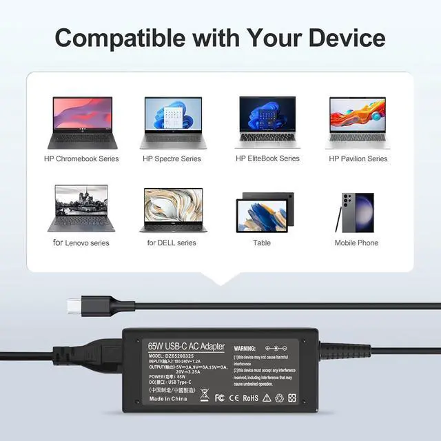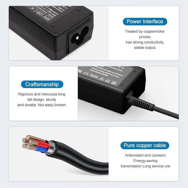 Widely compatibility: AC adapter suitable for most of 65watt type c devices.