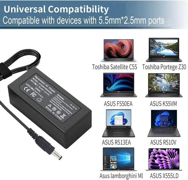 Compact and Portable: The toshiba laptop charger is small and lightweight design makes it easy to carry, ideal for professionals or students who require a dependable power source on the go