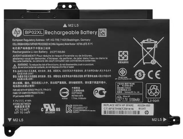Compatible P/N: BP02XL 849569-421 849569-541 849569-542 849569-543 849909-850 BP02041XL HSTNN-UB7B HSTNN-LB7H TPN-Q172 TPN-Q175 2ICP7/65/80