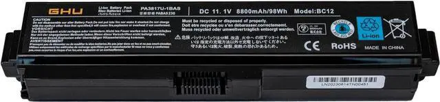 12-cell PA3819U-1BRS PA3819U-1BAS primary rechargeable extended life high capacity pabas228 pabas230 pa3817u1brs pa3817u-ibrs pa-3817u-1brs li-ion lithium replacement notebook computer professional battery batteries 11.1 voltage 98 watt, last more than 6 hour.