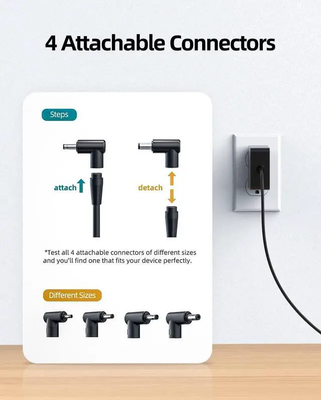 Package Includes: 1 X Replacement charger for Vivobook and Zenbook laptop 4 X Different sizes of detachable round connectors to fit ALL 65W-45W-33W- Vivobook and Zenbook laptops.