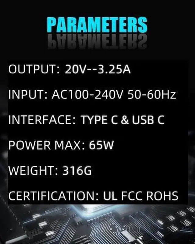 Output: 65w(20V-- 3.25A );