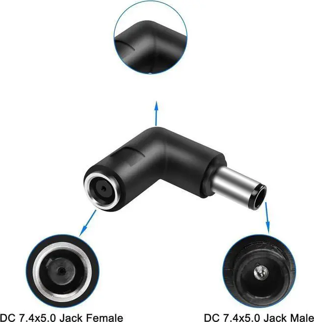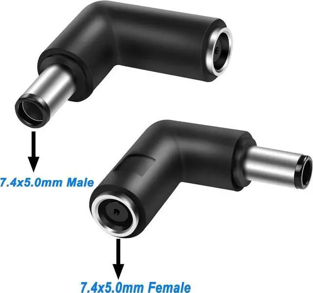 MEIRIYFA DC power connector adapter 7.4x5.0mm female plug to 7.4mm x 5.0mm male plug, Specification: 90 degrees. Ideal for laptop adapter plug straight to turn head adapter.