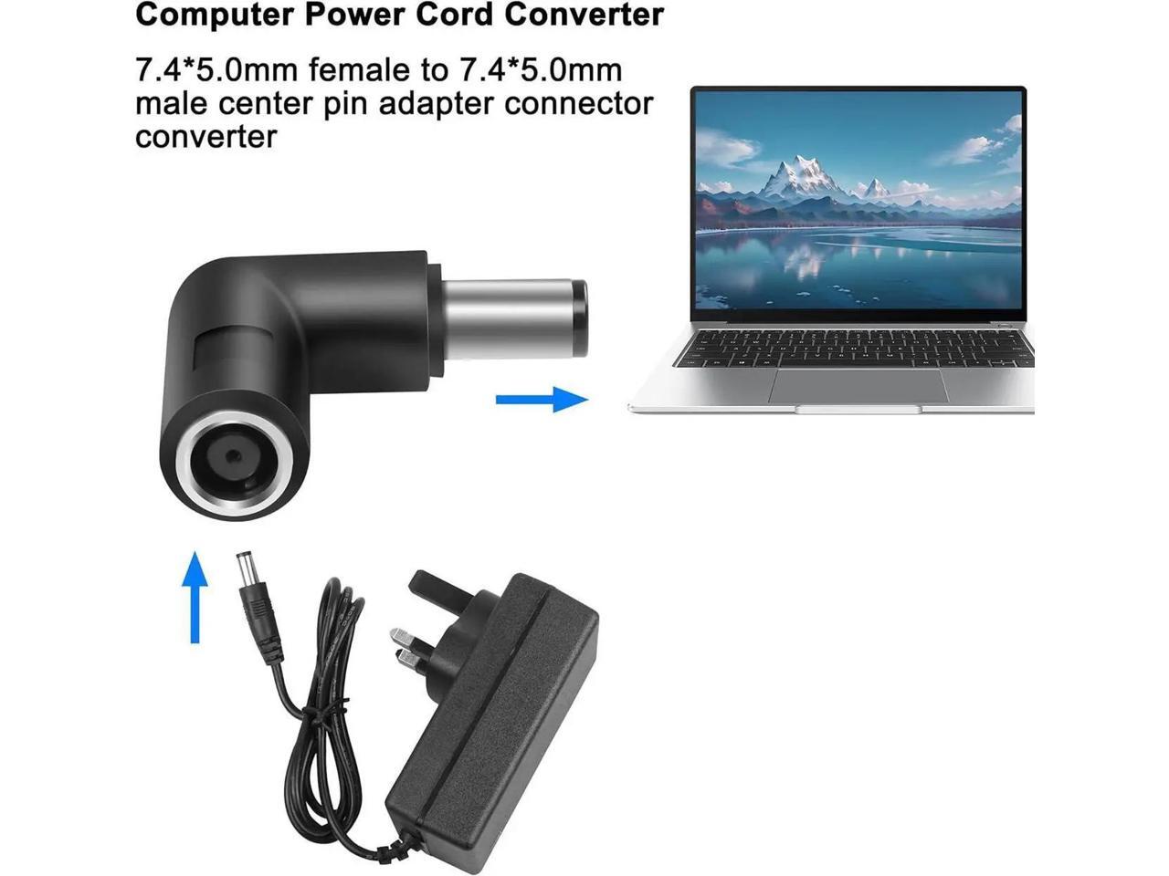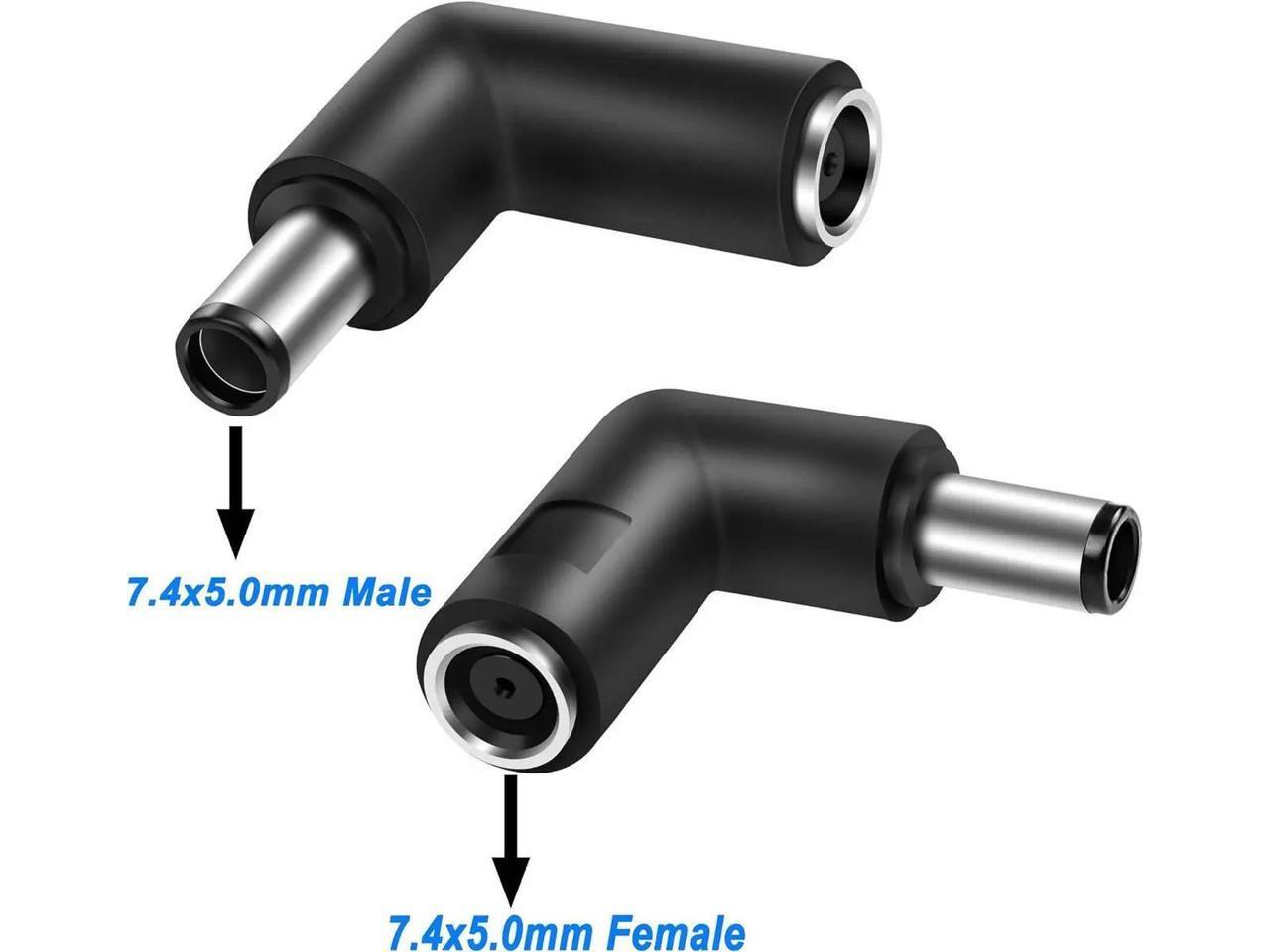 - MEIRIYFA DC power connector adapter 7.4x5.0mm female plug to 7.4mm x 5.0mm male plug, Specification: 90 degrees. Ideal for laptop adapter plug straight to turn head adapter.