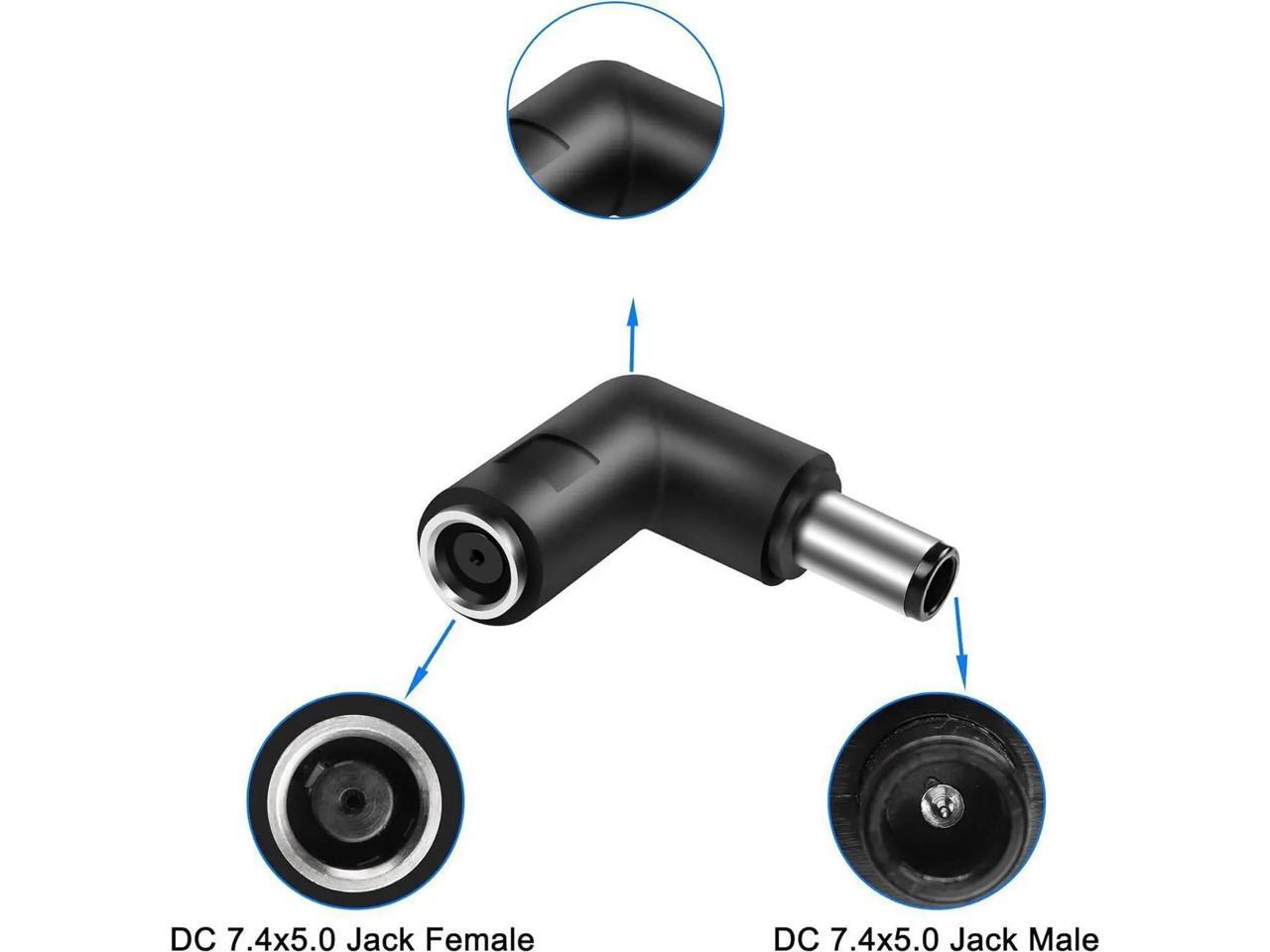 Aomoproing aptop Power DC 7.4mm X 5.0mm Adapter Male to Female Connector 90 Degree Angle Converter for Hp Laptop 2Pcs