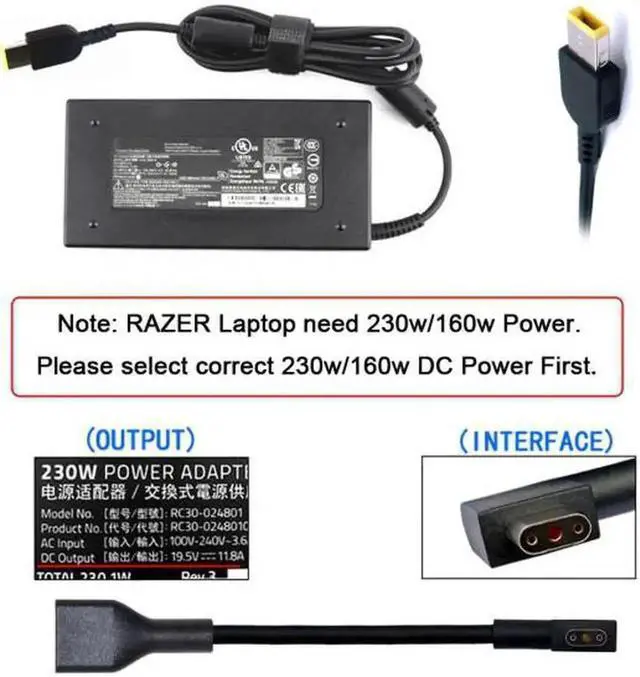 • Compatible for 230W RC30-0248 Blade Charger compatible with Blade 15 of model GTX1070/RTX2070/RTX2080 and Blade Pro 17.