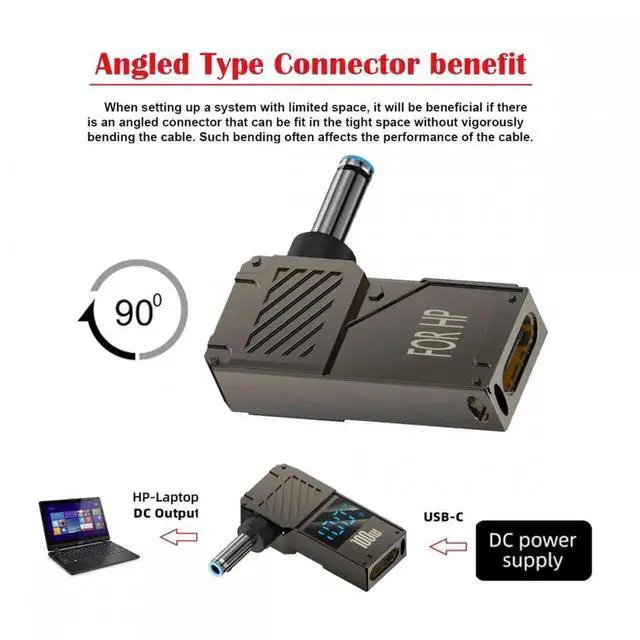 Smart LED Display 100W Type-C USB-C Input to DC 4.5 x 3.0 mm Jack Output Power 20V 5A PD Charge 65W Adapter for HP Laptop