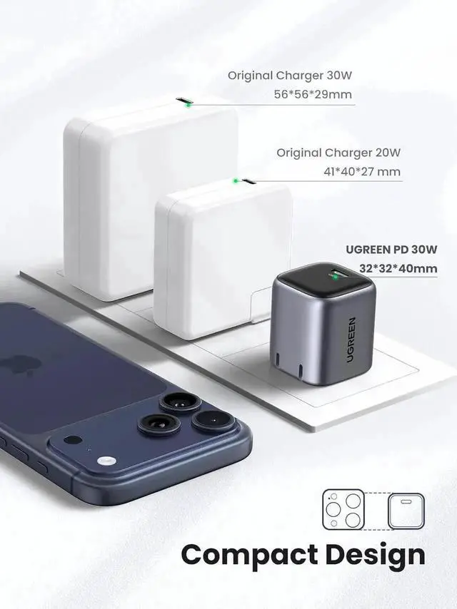 Aomoproing UGREEN 30W USB C Charger for iPhone 17, Nexode Foldable GaN PPS Compact Fast Wall Charger Block, USB-C Power Adapter for iPhone 17/16/15/14, Galaxy S25/S24/S23/S22