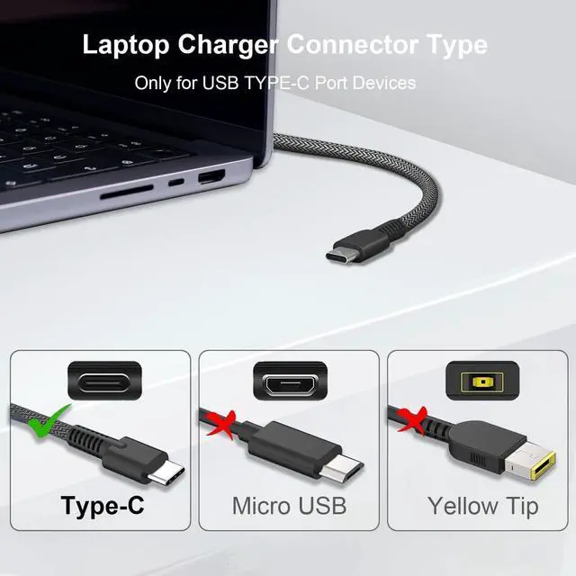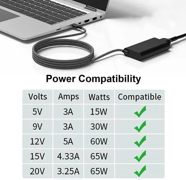 Size: Type USB C tip, Watt: 65Watt (Compatible with 45W HP Laptop Charger USB C).
