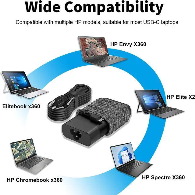 Chromebook Charger USB-C: HP Chromebook X360 14 11 12 Series, HP Chromebook x360 11 G1 EE, HP Spectre x360 14 2-in-1 charger, HP Pro x2 612 G2 table, for hp pavilion x360 laptop charger usb c, for hp elitebook 840 g10 and more hp computer charger usb c