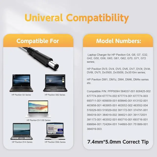 Laptop Charger for HP Pavilion G4, G6, G7, G32, G42, G50, G56, G60, G61, G62, G70, G71, G72