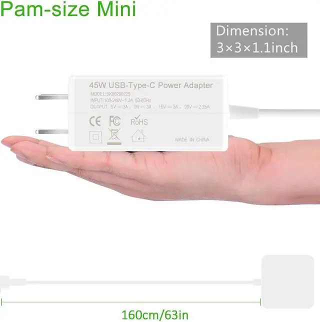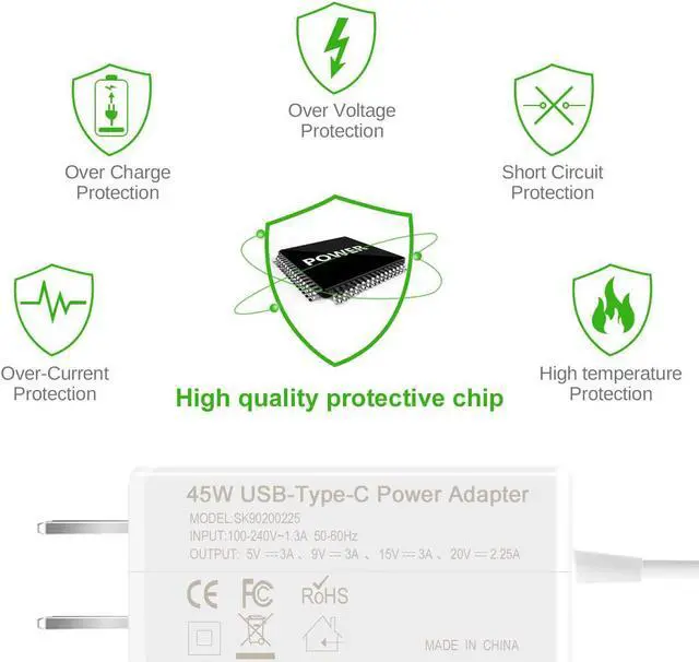 Output: 5V-2A 12V-2A 20V 2.25A 45W. 45W Type C/USB